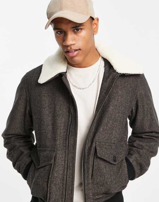 Selected Homme Blouson aviateur en laine Marron Very well made.