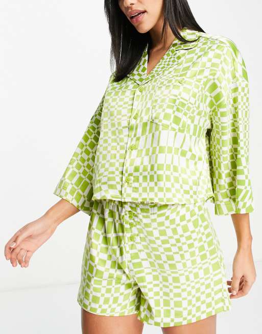 Monki satin wavy check print pajama set in dusty green ASOS Very well made.
