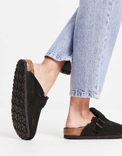 Birkenstock Boston Sabots doubl s de fausse fourrure Noir Very well made.