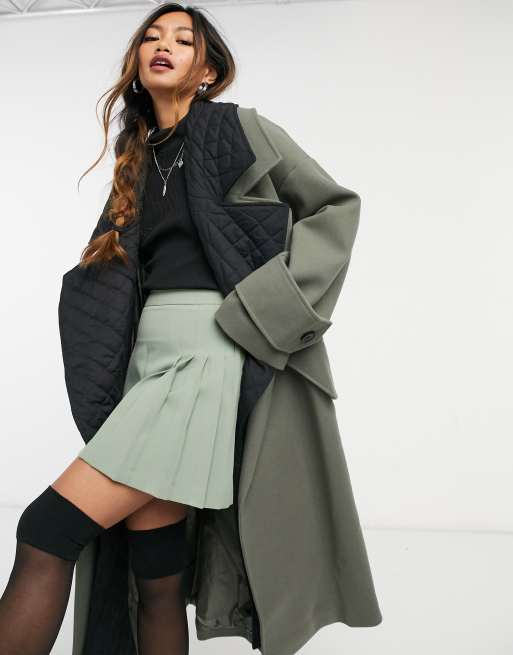 ASOS DESIGN quilted collar hero cuff detail coat in black and khaki Very well made.