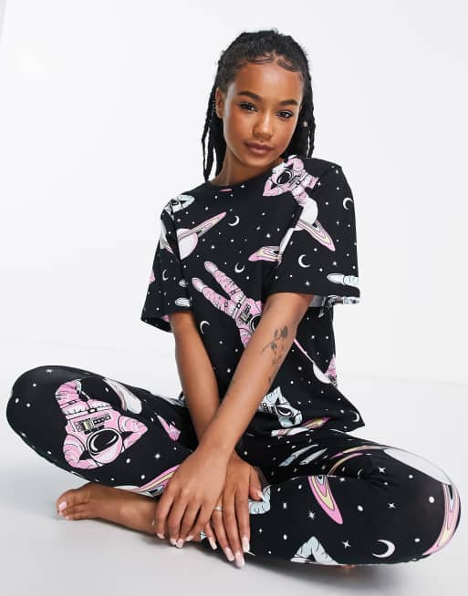 ASOS DESIGN Petite Pyjama avec t shirt et legging motif astronaute Noir Very well made.