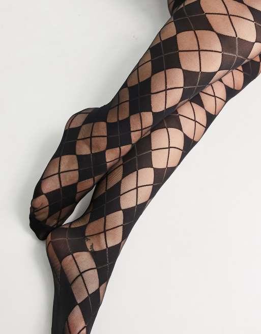 ASOS DESIGN Curve Collants 30 deniers carreaux et losanges Noir Very well made.