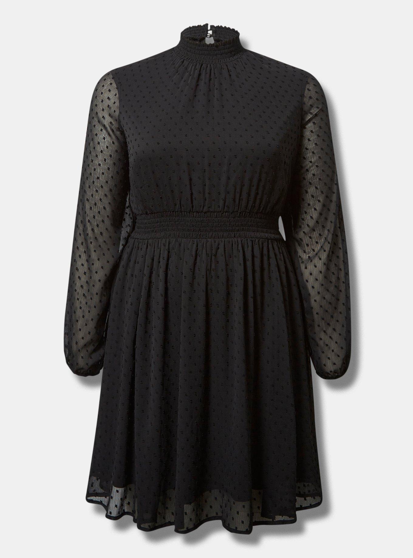 Plus Size Mini Clipdot Blouson Sleeve Mock Neck Skater Dress Very well made.