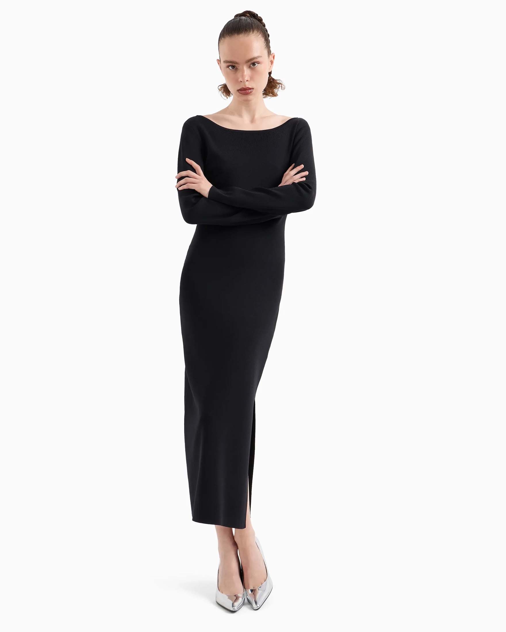 Abito lungo nero in misto viscosa con maniche lunghe e spacco laterale Very well made.