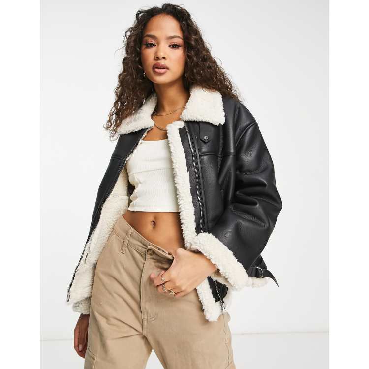 Bershka Blouson aviateur bord de fausse fourrure Noir ASOS Very well made.