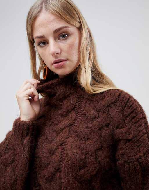 Mango oversized cable knit in chocolate in brown Very well made.
