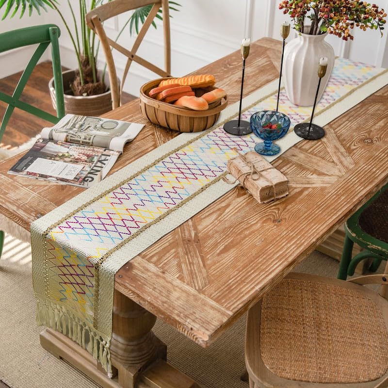 OSVINO Table Runner for Home Decor 72 Inches Boho Handmade Tassels Table Runners Natural Cotton Woven Runner for Holiday Party Bridal Shower Wedding Very well made.
