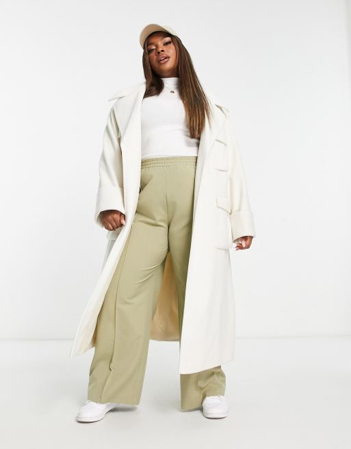 ASOS EDITION Curve Manteau long ceintur en laine m lang e Cr me Very well made.