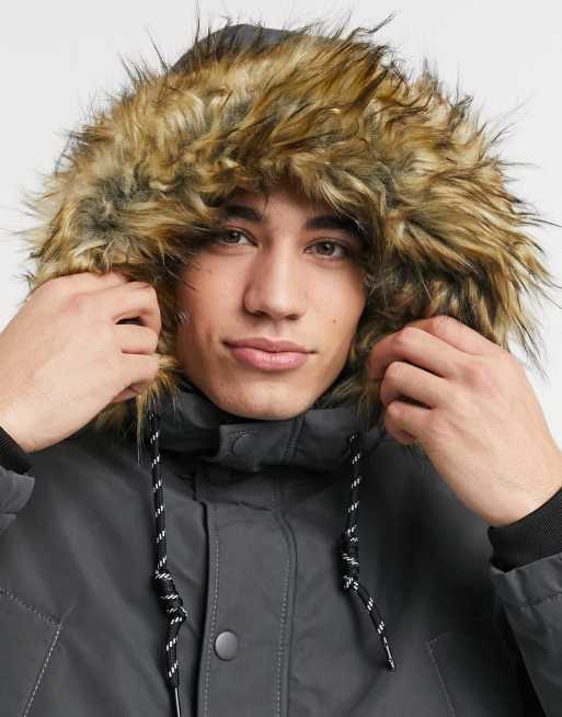Jack Jones Originals parka with faux fur hood in gray Very well made.