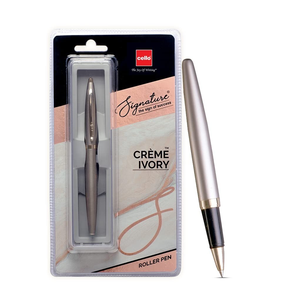 Cello Signature Creme Ivory Roller Pen Blue Ink 1 Roller Pen Ivory fs Very well made.