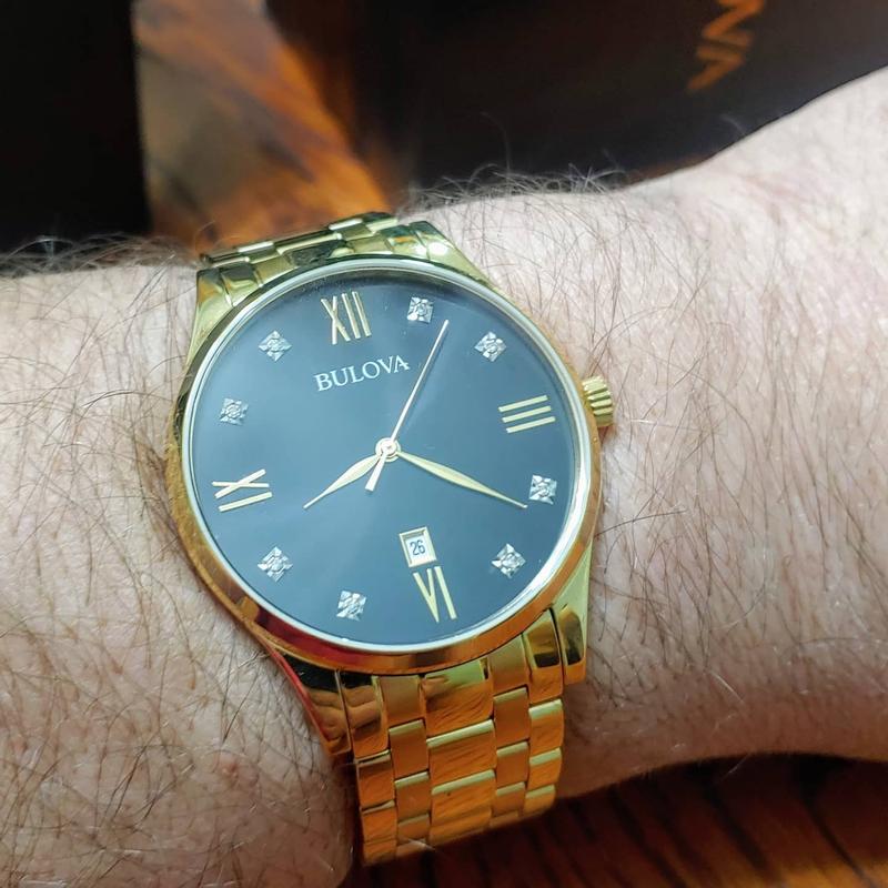 MSRP 475 Bulova 97D108 Men s Diamond Gloss Gold Finish Watch eBay Very well made.