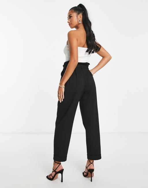 ASOS DESIGN Petite Pantalon carotte en maille point de Rome taille haute fronc e Noir Very well made.