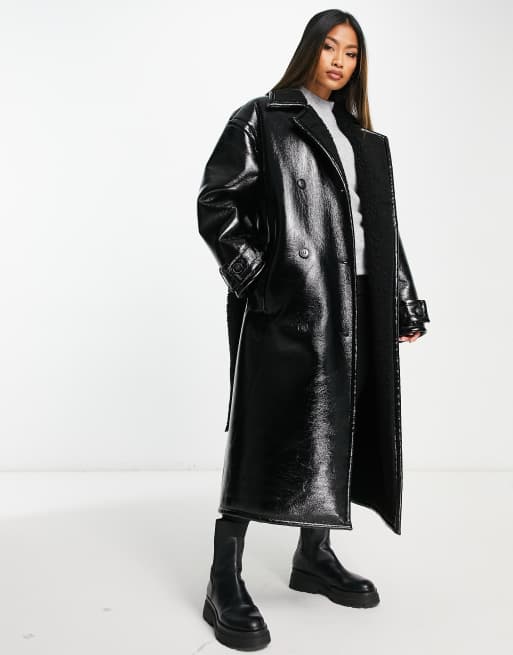 Black Vinyl Crinkle Trench Coat Tenue imperm able Veste en cuir Very well made.