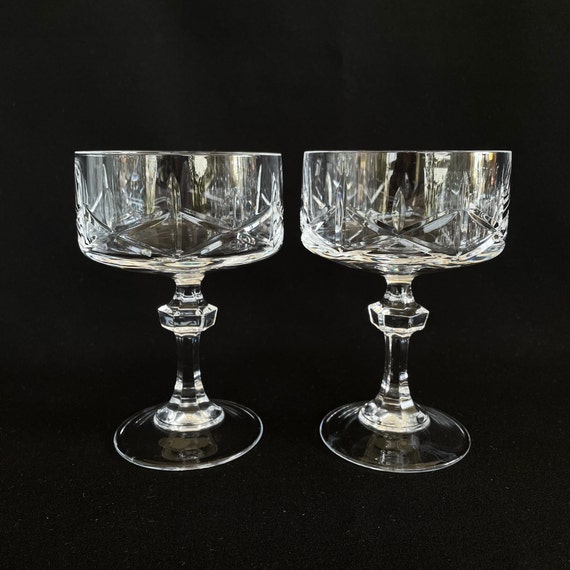Pair of Elegant Vintage Quality Crystal Flat Bottom 8oz Champagne Cocktail Coupe Glasses Vintage Barware Retro Barware Etsy UK Very well made.