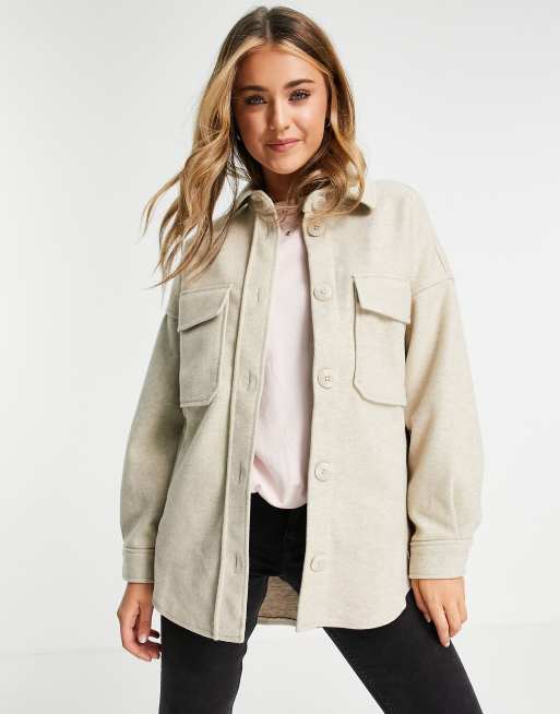 Stradivarius brushed overshirt jacket in ecru ShopStyle Very well made.