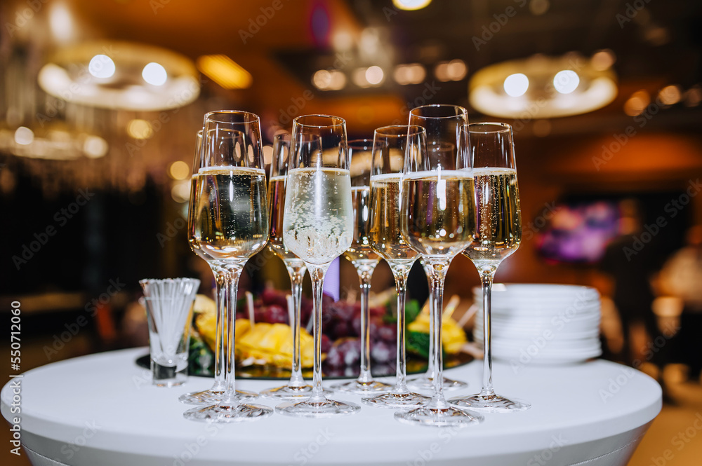 Three champagne glasses are on a round table with a picture of a star on the top Premium AI generated image Very well made.