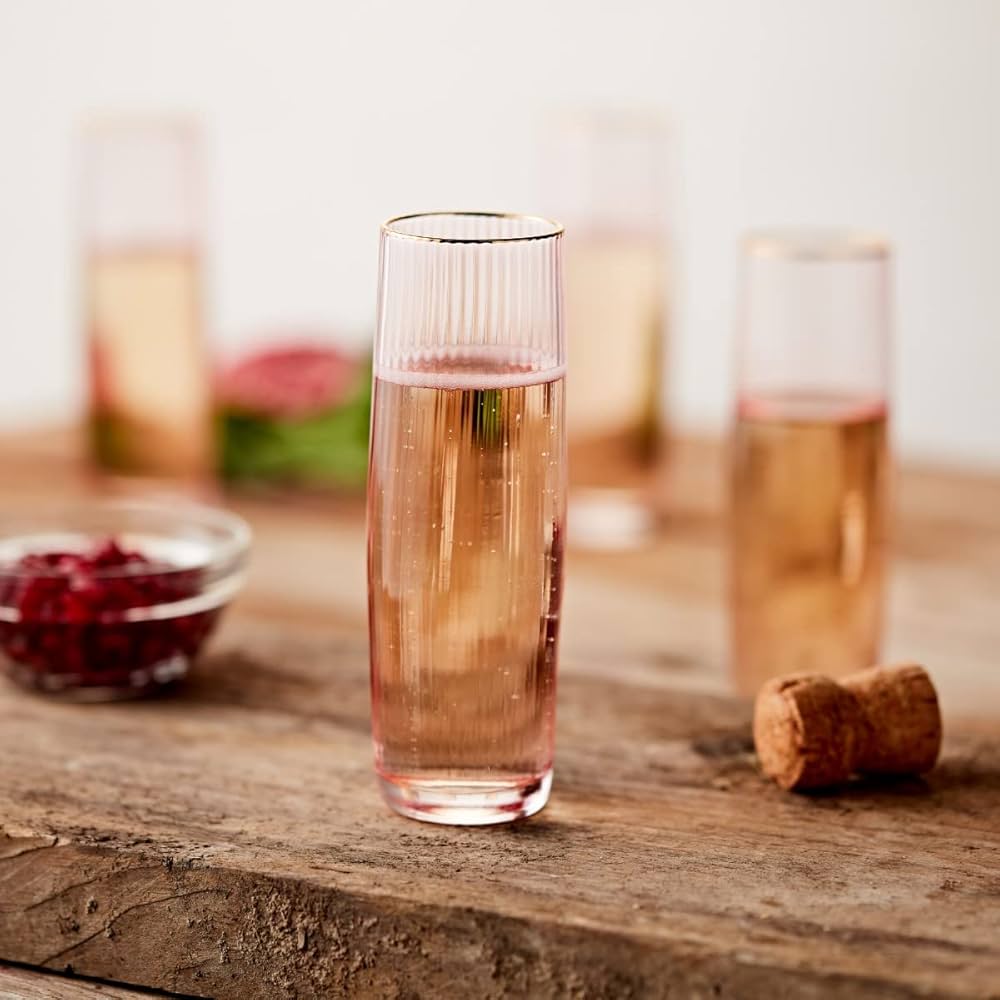 Drinkind Ribbed Champagne Glasses Set of 4 Prosecco Glasses without Stem Borosilicate Drinking Glasses Suitable for Champagne or Sparkling Wine Pink Champagne Glasses without Stem 175 ml Amazon Hom... Very well made.