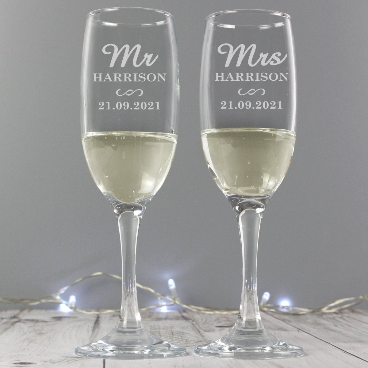 Personalized Mr Mrs Pair Of Wedding Flutes Champagne Flutes Toas Engraved Memories Very well made.