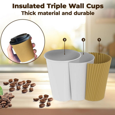 ECONX 8oz Takeaway Coffee Cups with Black Lids Triple Walled Insulated Disposable Ripple Coffee Cups Pack Very well made.