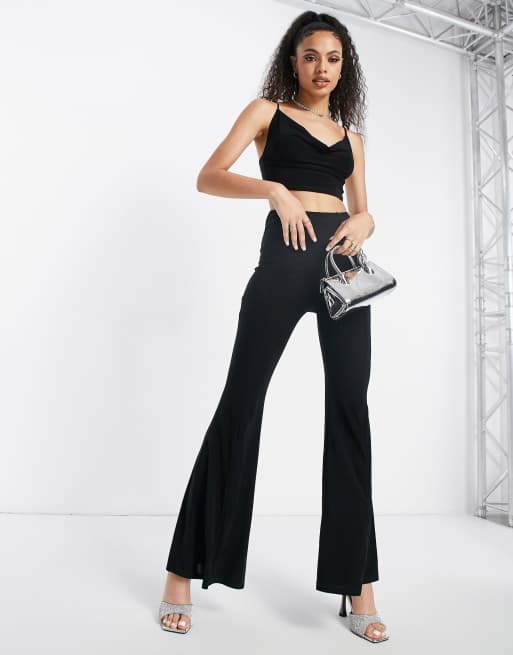 Femme Luxe high waisted pleat detail flare pants in black part of a set Very well made.