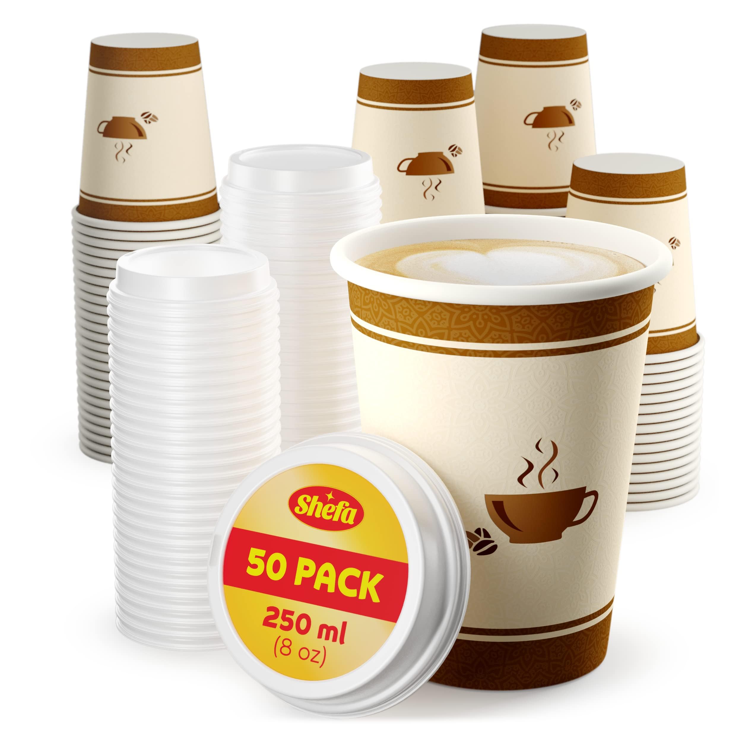 Shefa 8oz 50 Coffee Cups with lids Paper Cups for Hot Drinks or Cold Drinks Hot Cup Takeaway for Coffee Shops Heat Resistant Cup BPA Free Paper Very well made.