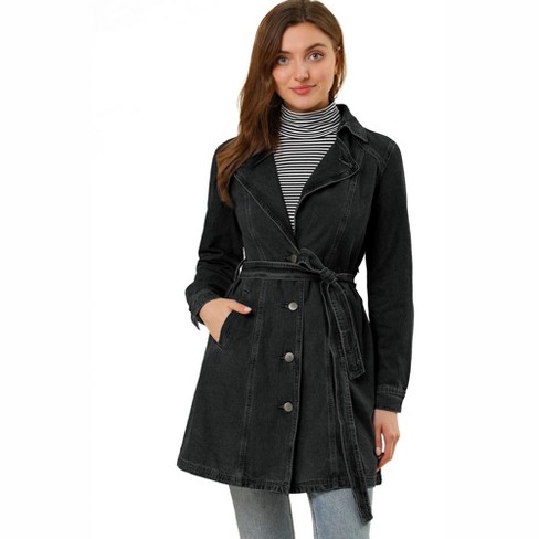 Allegra K Women s Notched Lapel Belted Trench Long Denim Jacket Black Small Target Very well made.