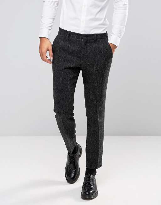 ASOS Slim Suit Trousers in Grey Harris Tweed Herringbone 100 Wool Very well made.