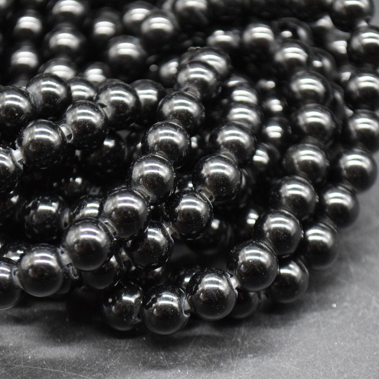 Large Hole 2.5mm Beads Black Obsidian Semi Precious Gemstone Round Beads 8mm 15 strand Very well made.