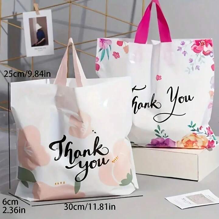 20 50pcs New Thank You Gift Bags Explosive Plastic Tote Bags Clothing Shop Shopping Bag Small Business Supplies Sale Shopping Bag Party Bag Very well made.