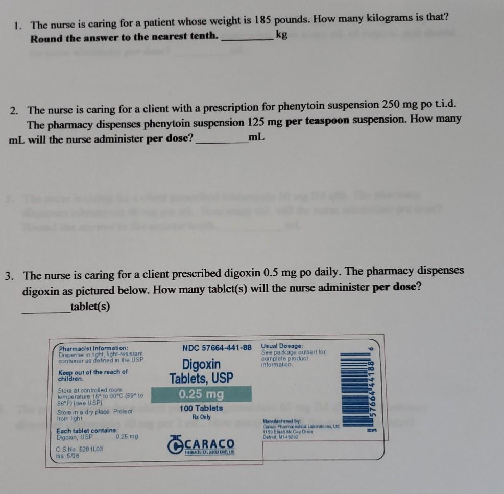 Solved 1. The nurse is caring for a patient whose weight is Very well made.