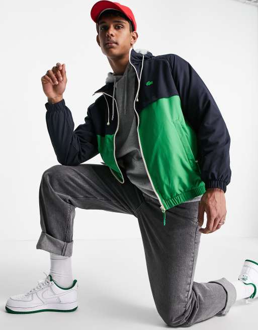 Lacoste block stripe rugby jacket in navy green Very well made.